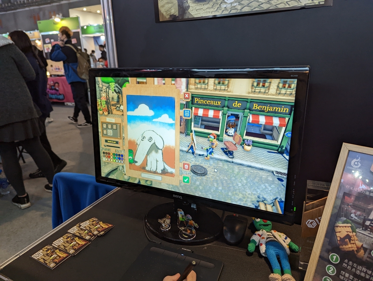 あと私がブースの側に立っていると、なぜか人が近づいてこなくて(怖いとかそういう事じゃないと思うw)あとブースの側で「試遊してみてください」と声をかけても「あ、絵とかかけないんで(苦笑)」と断られるんだが、でもブースから10メートルくらい離れたところから忍者のように存在を消してブースを見てると、周りをキョロキョロ見ながらそっと椅子に座って絵を描き始める人が多かったのが、今回他のイベントと違ったところかな?と。きっと絵を描くことってパーソナルな事なのであんまり人に見られたくないとか?そういう心境があるのかな?とか色々考えていたところ。スペインとかのイベントの時は「あーブースに開発者いるー!!色々聞いたろー!」みたいな関西人なノリでみんな近づいてきてくれたので、今回のシャイな感じは初めてだった。