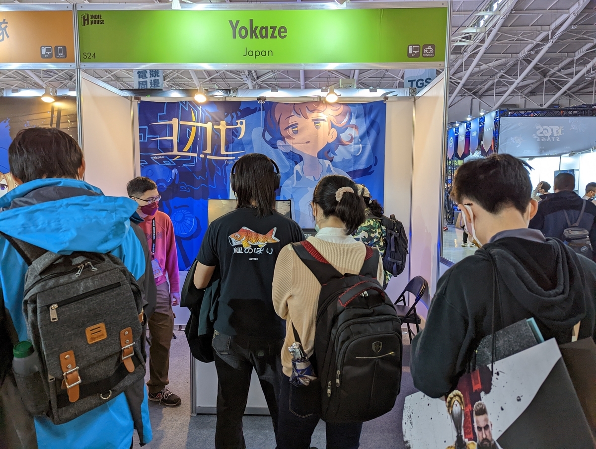 インディーエリアに、京都のゲームレーベル「ヨカゼ」も出展していて、行列ができていた。